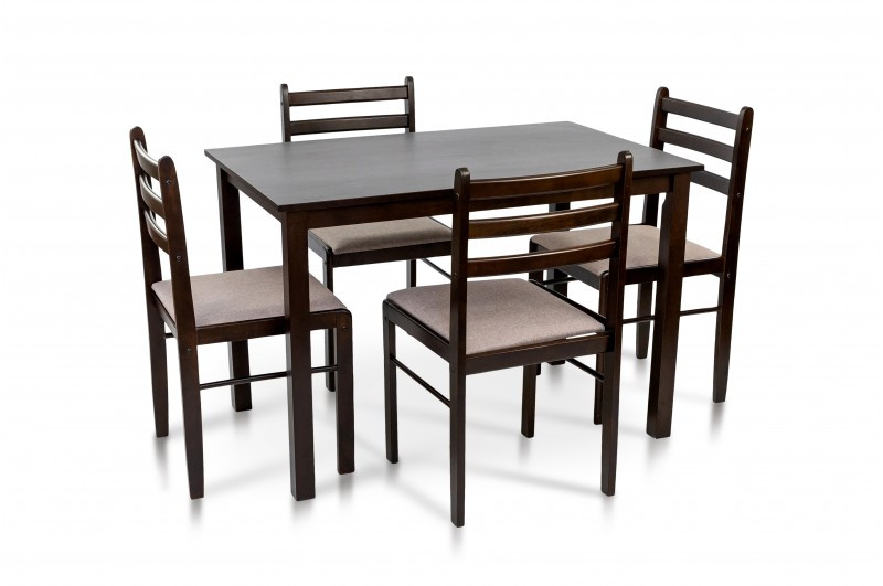 Обідня група Джерсі горіх темний — стіл із МДФ та шпону і 4 класичних стільці зі світло-коричневою оббивкою