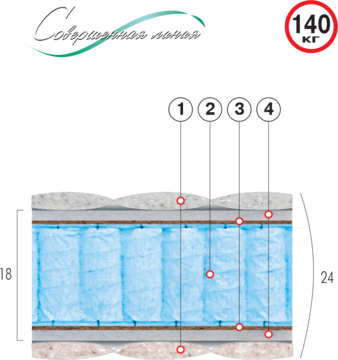 Висота матраца: регламентная высота 18 см, объемная высота до 24 см |
